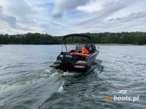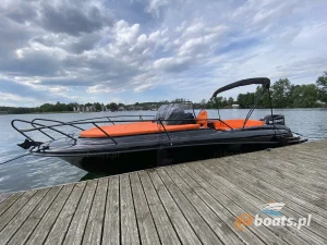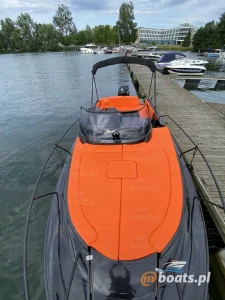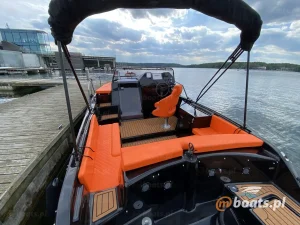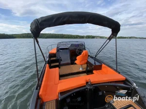 M750 to motorówka z dużym, otwartym słonecznym pokładem i wyposażeniem, pozwalającym na wygodny wypoczynek nawet 8 osobom. W razie potrzeby, na łodzi można rozstawić bimi chroniące od słońca.