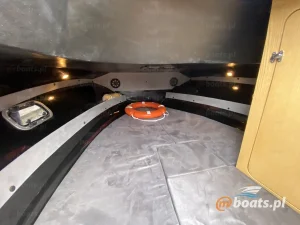 Kabina wyposażona w przesuwne drzwi zapewniające spokój i prywatność. We wnętrzu wygodna kanapa z miejscem do spania lub wypoczynku nawet dla kilku osób. Oddzielona drzwiami toaleta chemiczna. Dostęp do kabiny również przez mały właz dziobowy.